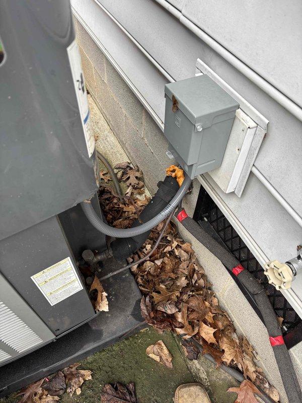 Diagnosed outdoor heat pump requiring whip replacement. Part has been ordered and payment for two labor hours has been collected. Will return tomorrow to complete installation of the new whip and restore system operation.