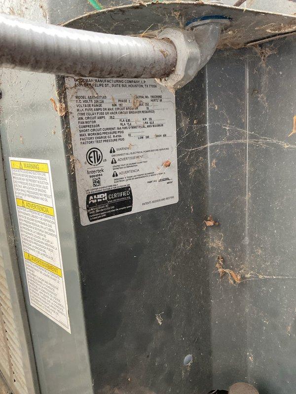 Completed second annual planned maintenance visit for Gold Level service agreement covering two HVAC systems, both approximately 6 years old. Performed comprehensive inspection and maintenance on Goodman Manufacturing equipment, including visual assessment of outdoor condensing unit exterior condition, refrigerant line connections, and manufacturer specification labels. Unit showed normal weathering and debris accumulation consistent with outdoor installation; cleaned accessible surfaces and removed organic matter from equipment casing.