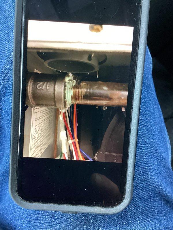 Responded to emergency service call for strong gas odor detected around furnace in 6-year-old HVAC system. Upon inspection, identified corroded copper gas line connection with visible oxidation at fitting joint. Repaired leak by replacing damaged section of gas line and ensuring proper connection integrity, then verified system safety with comprehensive leak test.