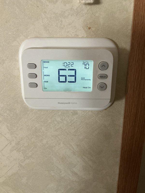 Responded to a callback for a 6-month-old system that was not responding to heating demands. Upon arrival, confirmed thermostat was set to 68°F but room temperature was 63°F with "Heat On" displayed. Diagnosed and resolved communication issue between thermostat and furnace control board, restoring proper system operation.