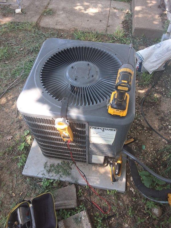 Responded to no cooling complaint on 5-year-old residential central air conditioning system. Upon arrival, found indoor fan operational but unit blowing warm air with thermostat not set to cooling mode. Performed diagnostic testing on outdoor condenser unit using electrical testing equipment to assess compressor and electrical components. Identified system malfunction preventing proper cooling operation and completed necessary repairs to restore functionality.