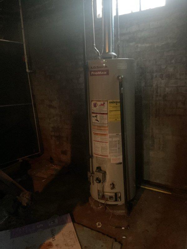Conducted comprehensive assessment of existing 40-50 gallon gas-fired A.O. Smith ProMax water heater located in basement utility area. Evaluated current venting configuration and provided estimate for installation of new vent pipe system to ensure proper exhaust ventilation and code compliance. Documented equipment condition, existing infrastructure, and utility connections for replacement specifications.
