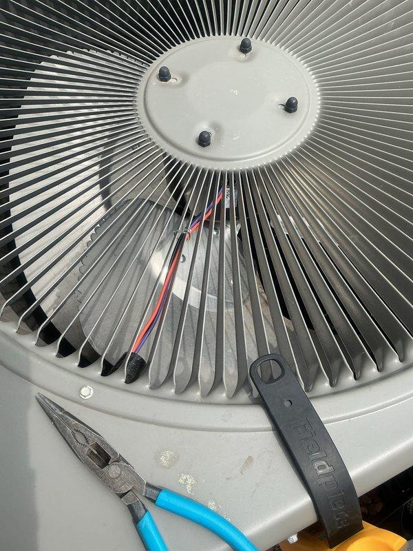 Responded to no-cool condition on 4-year-old residential air conditioning system that failed to restart after initial operation on first day of seasonal use. Upon inspection, diagnosed failed condenser fan motor preventing proper heat rejection at outdoor unit. Replaced defective condenser fan motor with OEM equivalent replacement, verified proper electrical connections, and tested unit operation through complete cooling cycle. System restored to full operational capacity with proper airflow and temperature differential confirmed.