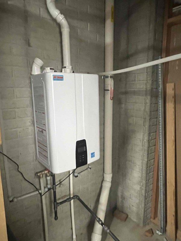 Successfully completed installation of Navien NPE-240A2 tankless natural gas water heater. Unit was properly mounted, connected to existing gas and water supply lines, and vented according to manufacturer specifications. System was tested for proper operation, flow rate, and temperature output to ensure optimal performance and energy efficiency.