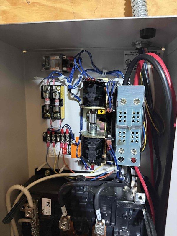 Responded to service call for 20-year-old Generac generator that was running but not providing power to residence. Inspected electrical control panel and discovered faulty transfer switch preventing proper connection between generator and home electrical system. Replaced transfer switch components and tested system functionality, confirming proper power transfer during simulated outage. Generator now successfully powering all home circuits.