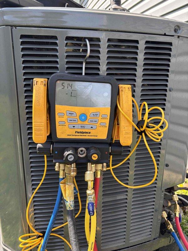 Responded to a second opinion request for a 4.5-year-old heat pump system where the outdoor unit was tripping the breaker upon startup while the air handler operated normally. Previous contractor diagnosed a failed compressor showing short circuit readings. Performed diagnostic testing using digital manifold gauges to assess compressor electrical integrity and refrigerant pressures, confirmed compressor failure, and documented system model and serial numbers for part ordering. Scheduled follow-up appointment for a half-day compressor replacement once replacement part arrives.
